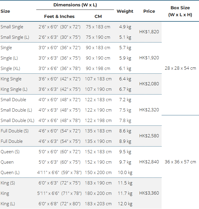 Hong Kong standard mattress sizes are expressed in feet & inches. If your bed measurements (i.e. IKEA / Europe / China standard sizes) differ slightly from the sizes we carry, choose the closest topper size available. Our foam-based toppers come with elastic straps to secure it onto your mattress, and can fit mattresses up to 3cm smaller or larger than the topper, with no issues at all.